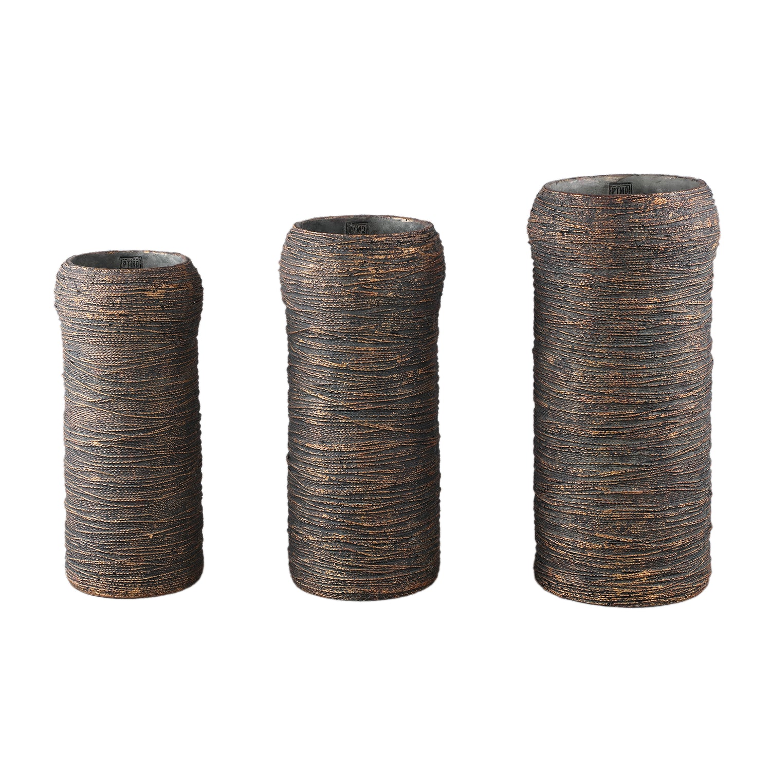 Ricci Black Cement Pot Ribbed Round High L