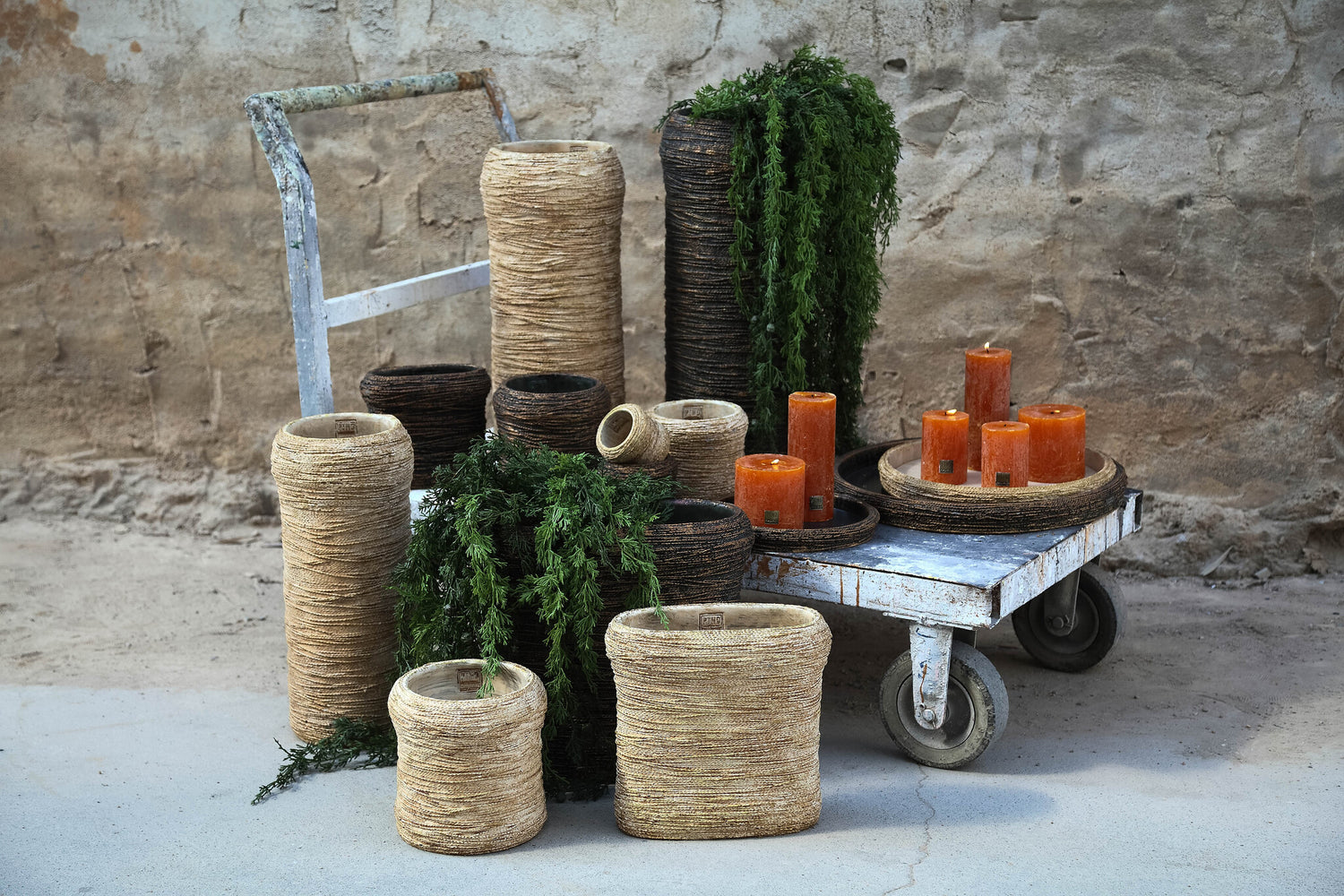 Ricci Brown Cement Pot Ribbed Oval M