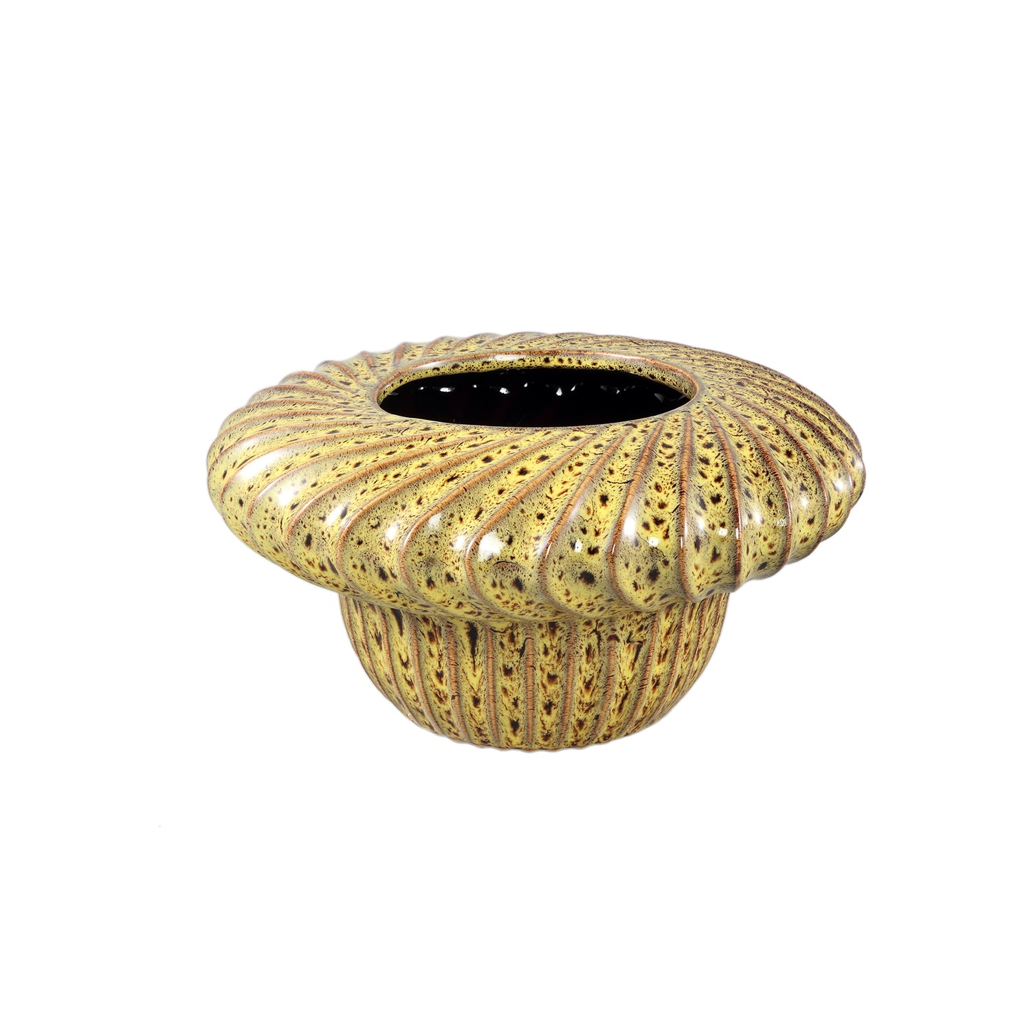 Sindi Yellow Ceramic Pot Round Shaped Lines Low M