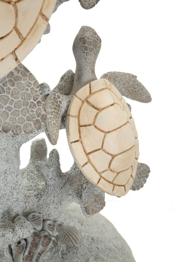 Resin table lamp embellished with cute sea turtles. Complete with beige fabric lampshade.