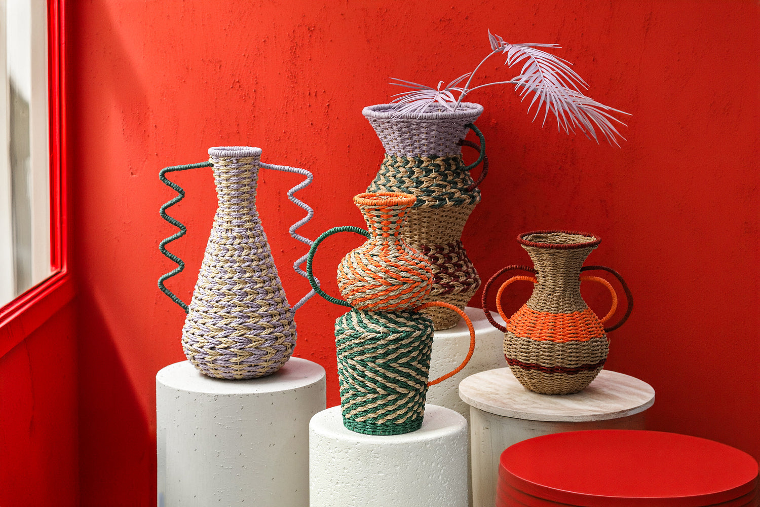 Veraa Green Natural Paper Basket Round With Ears