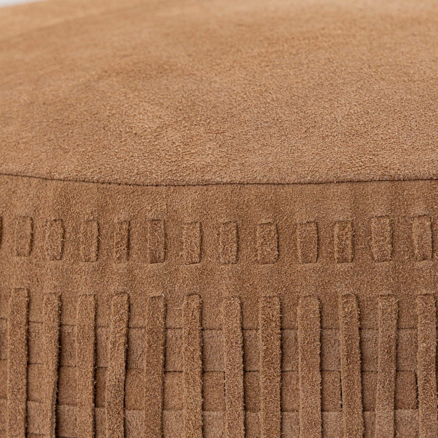 Eleora Camel Suede Leather Pouf Fringes Round S