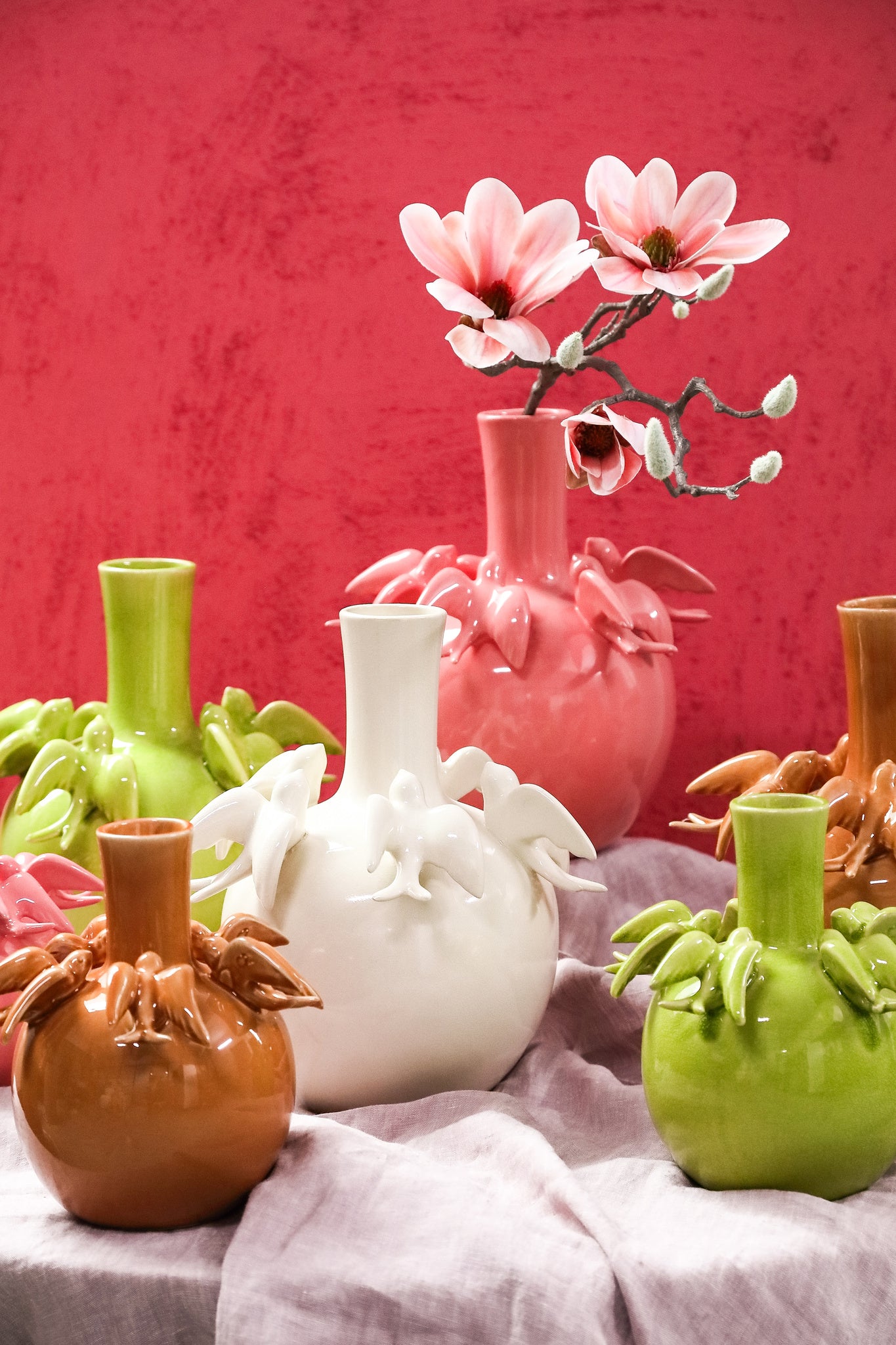 Emmelyn Pink Bulb Ceramic Glazed Vase Birds L
