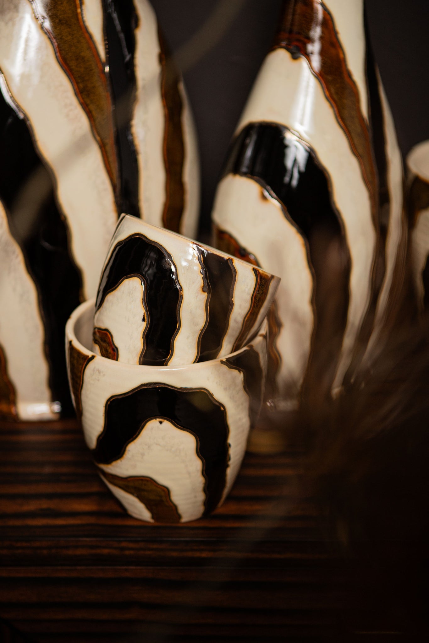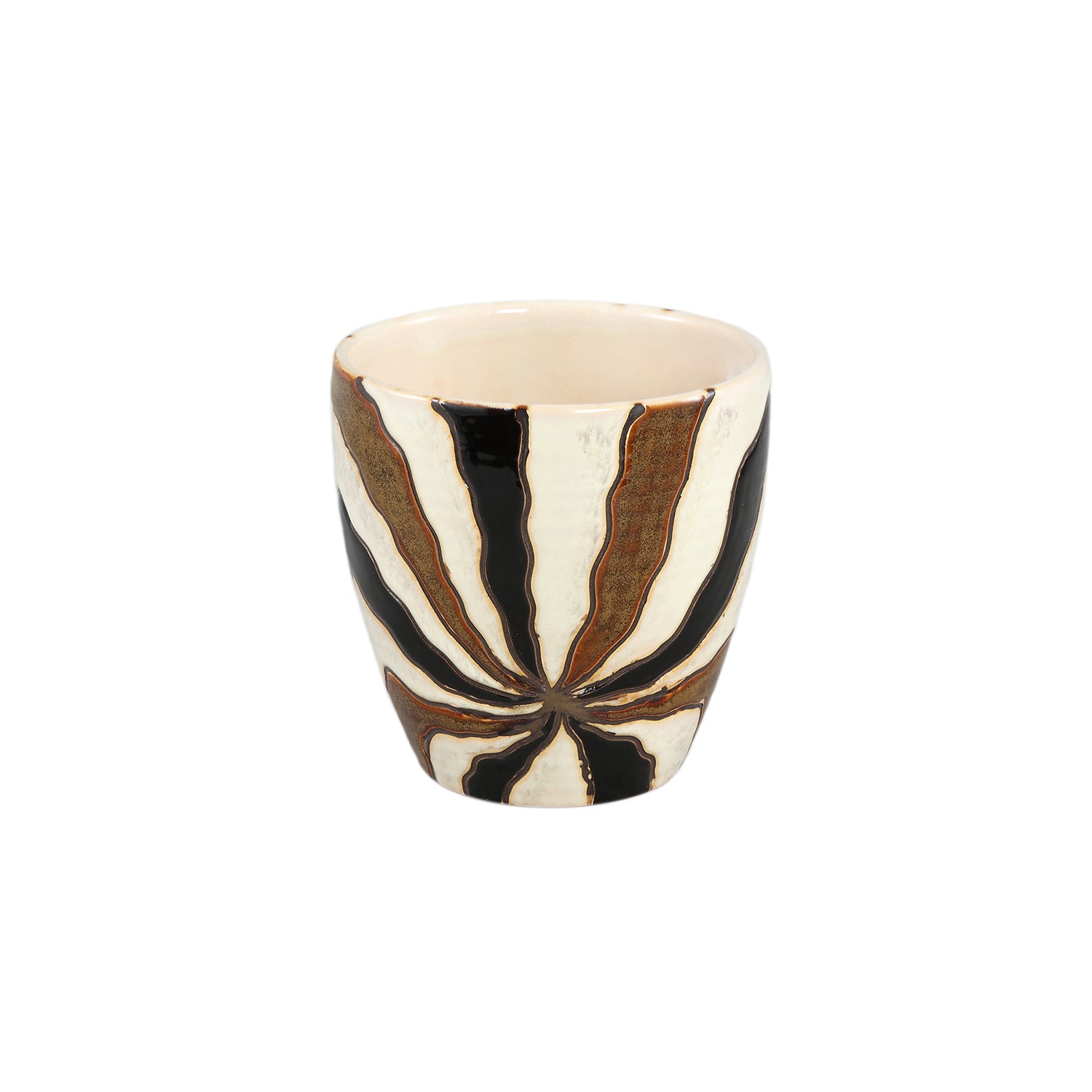 Evelin Dark Brown Round Ceramic Pot With Lines M