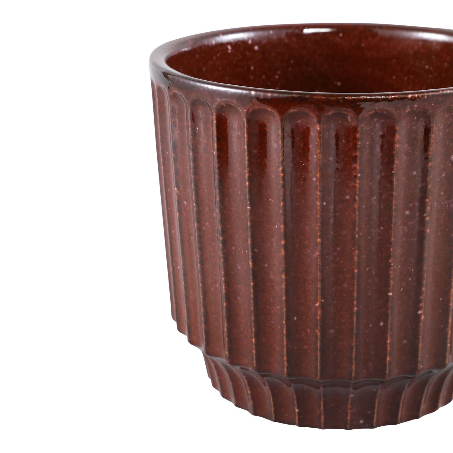 Hodor Bordeaux Glazed Ceramic Round Pot Lines L