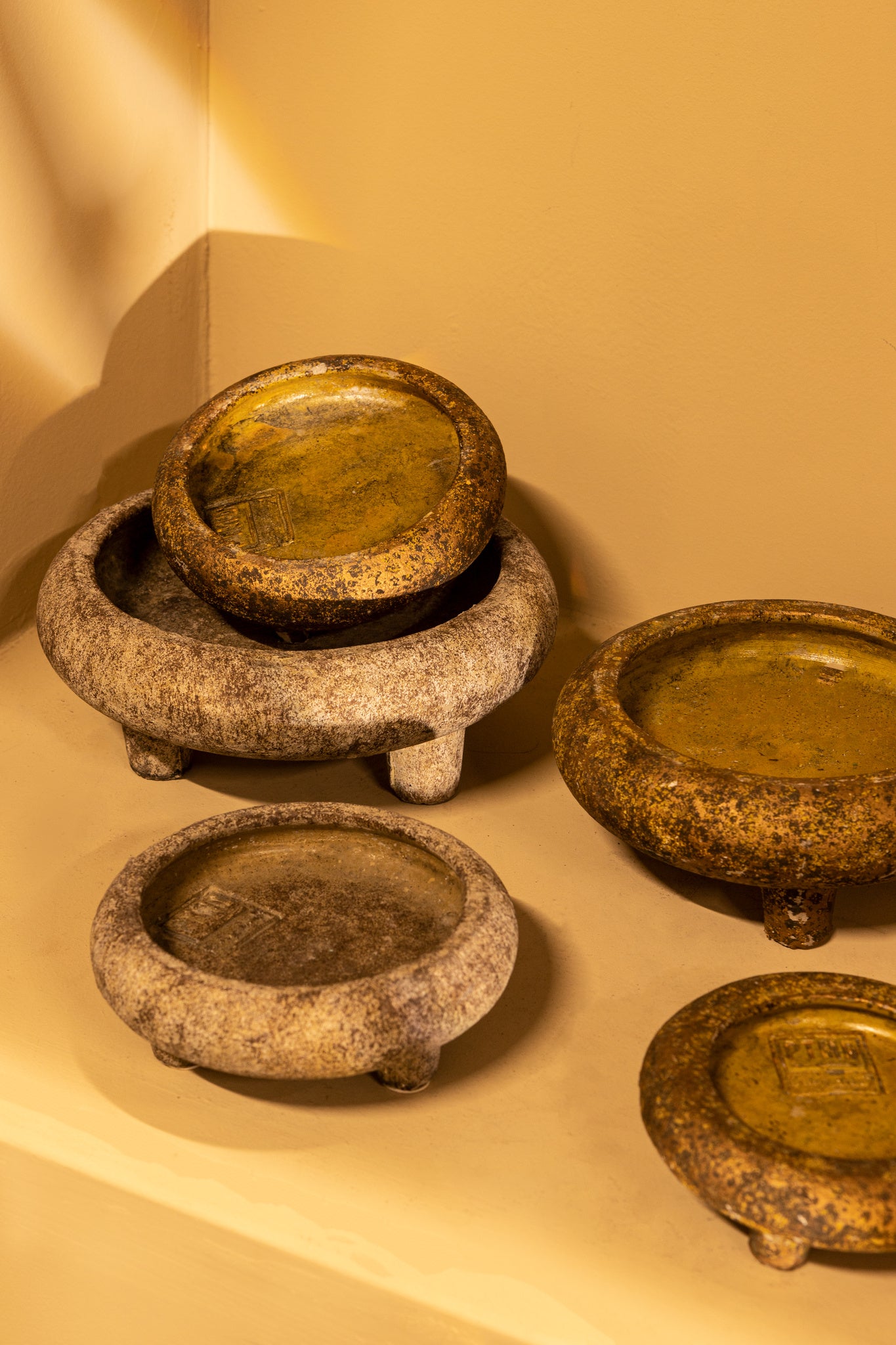 Tarris Gold Cement Bowl On Feet Round Low XS